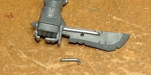 I’m leaving these two bits of cabling as they are for now, since this blade was converted purely for the purposes of this tutorial, but on a finished model you’d want to green-stuff in the end of any power line you added so it blends smoothly in with the rest of the weapon’s detail.
